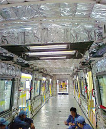 在側(cè)壁和頂棚的應(yīng)用事例中,Greencos綠寰宇多型號吸聲隔熱泡綿板的低熱能傳導(dǎo)性顯示出高效隔熱的性能。例如,空調(diào)載客車的運行費用因此可以得到很大程度的降低。